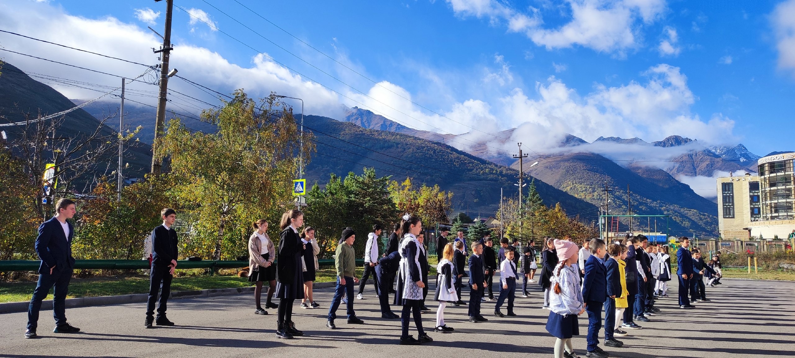 Почетное право поднять флаг РФ было предоставлено ученикам 11 класса: Назаренко Глебу, Цориеву Давиду и Елканову Азамату. Первый звонок в этом учебном году подали Цориев Давид, ученик 11 класса и Докшукина Алана, ученица 1 класса.